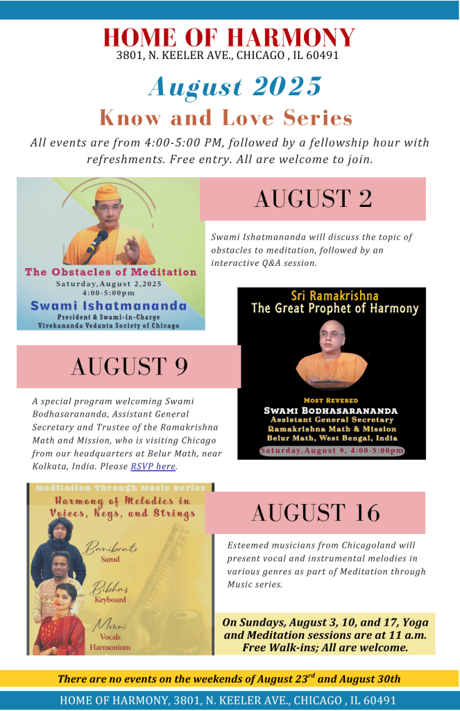 This will be followed by a featured Bharatnatyam and fusion dance performance with Harini and Misha Talapatra, accompanied by live music with Randall Jamrock and Shruti Kannan.