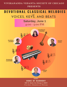 11/10/24 Jai Sovani’s School Vocal Student Recitals at Lemont Hindu Temple, Randall Jamrok tabla accompaniment 11:30 AM – 12:30 PM.
